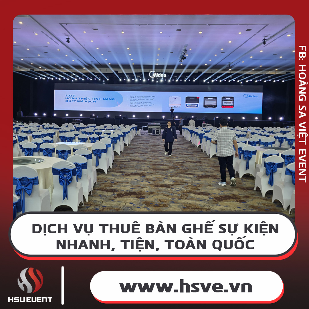 Khi lựa chọn Cho Thuê Bàn Ghế sự kiện tại Hoàng Sa Việt, bạn không chỉ nhận được sản phẩm chất lượng, đa dạng mẫu mã mà còn được trải nghiệm dịch vụ Giao Nhanh, tận tâm và chuyên nghiệp trên toàn quốc. Với bề dày kinh nghiệm, danh hiệu uy tín và hệ thống chi nhánh rộng khắp, Hoàng Sa Việt cam kết mang đến giải pháp tối ưu cho mọi nhu cầu tổ chức sự kiện – từ hội nghị, hội thảo, tiệc cưới đến triển lãm, khai trương… Dịch vụ Cho Thuê Bàn Ghế của Hoàng Sa Việt luôn đặt quyền lợi khách hàng lên hàng đầu, đảm bảo sự kiện của bạn thành công rực rỡ, ấn tượng và tiết kiệm chi phí tối đa. Hãy liên hệ ngay với Hoàng Sa Việt để được tư vấn miễn phí và trải nghiệm dịch vụ cho thuê bàn ghế sự kiện chuyên nghiệp số 1 Việt Nam!