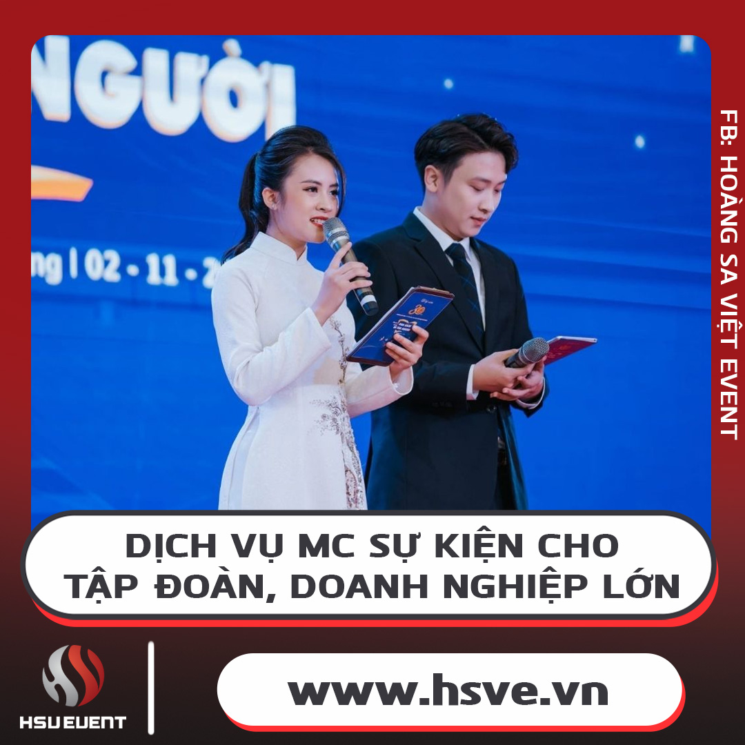 Khi nhắc đến Dịch Vụ Cho Thuê MC Sự Kiện Cho Công Ty, Doanh Nghiệp Lớn, Công Ty Hoàng Sa Việt luôn là lựa chọn hàng đầu nhờ kinh nghiệm dày dạn, đội ngũ MC chuyên nghiệp và dịch vụ chăm sóc khách hàng tận tâm. Được vinh danh với nhiều giải thưởng lớn, Hoàng Sa Việt đã và đang phục vụ hàng nghìn doanh nghiệp lớn trên toàn quốc, cam kết mang lại giá trị vượt trội cho mọi sự kiện.